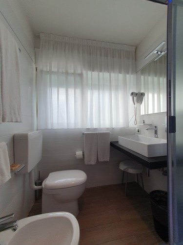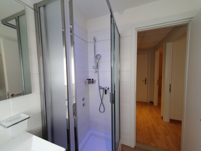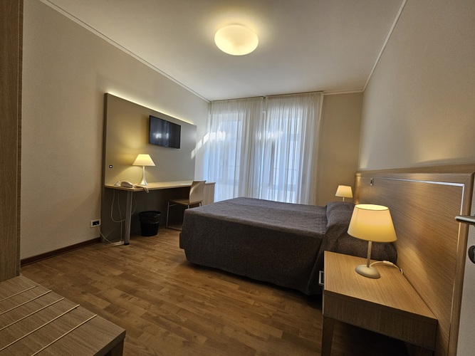 Camera quadrupla adatta a famiglie. Le stanze non dispongono di un balcone ma entrambe sono ben finestrate. Le due camere comunicanti con due letti matrimoniali ciascuna hanno atrio ed un nuovo bagno con box doccia e WC, 2 TV a schermo piatto, wi-fi e aria condizionata regolabile, cassaforte e telefono.