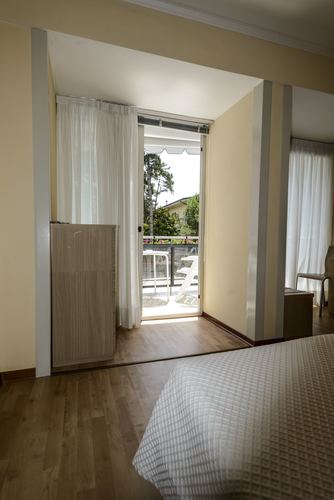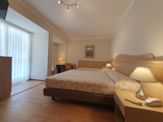Camera tripla di ampia metratura. La stanza dispone di un ampio balcone con vista giardino, letto matrimoniale più singolo, scrivania ,bagno con doccia e WC, TV a schermo piatto 28", wi-fi, telefono, cassaforte e aria condizionata regolabile. Le finestre insonorizzate garantiscono il silenzio e la tranquillità della pineta.